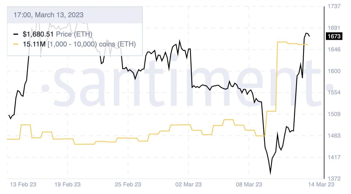 “Ethereum whales with 1,000 to 10,000 $ETH added around 400,000 ETH to their holdings in the recent crypto market dip, worth around $600,000,000.”