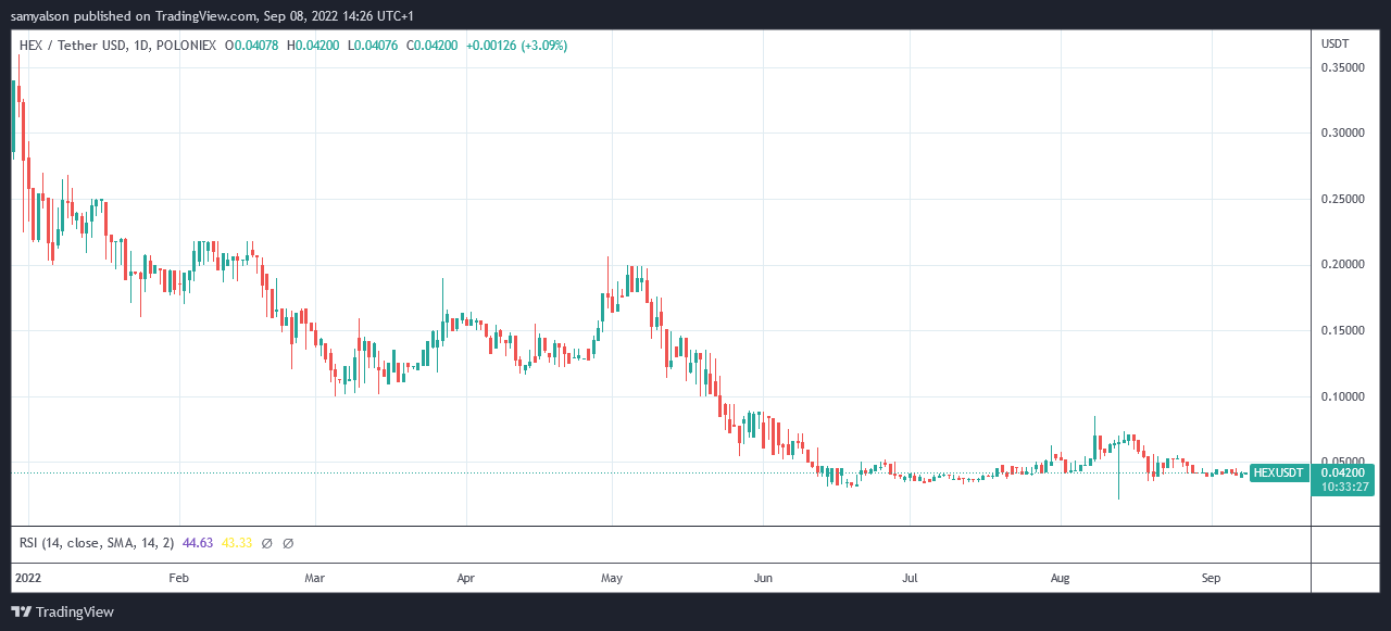 Value investor Mike Alfred recently slammed HEX as the divisive token dipped below $0.04. Bulls have since raised its price back above this level, to $0.042 at writing.
