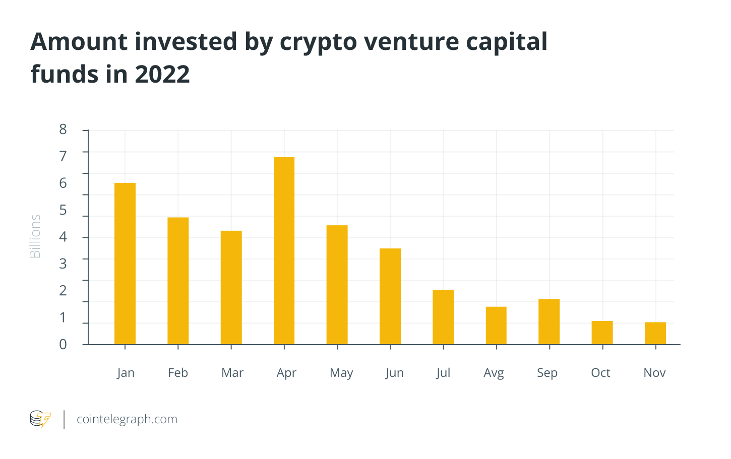 It’s not all bad news, though. Despite a slowdown in crypto VC funding since May, the total funding for the year has exceeded the figure for 2021. Cointelegraph Research’s VC Database shows that a total of $36.1 billion has been raised in 2022, with less than two weeks of the year remaining. By contrast, the total funds raised in 2021 was $30.3 billion.