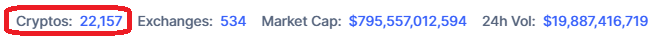 Indeed, the historical data that Finbold retrieved using the Internet Archive’s Wayback Machine indicates that the crypto market had 22,157 digital assets as of January 1, 2023, when its global market cap stood at a mere $795.56 billion, as shown by the crypto tracking platform CoinMarketCap on that date.