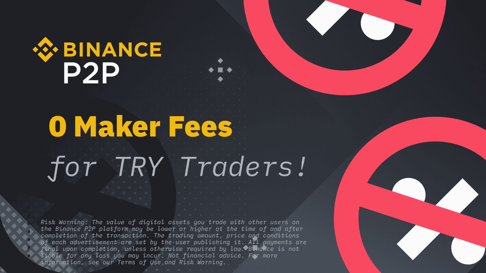 During the Activity Period, all makers who post new advertisements traded with fiat currency TRY will enjoy zero maker fees for every successful trade on these pairs.