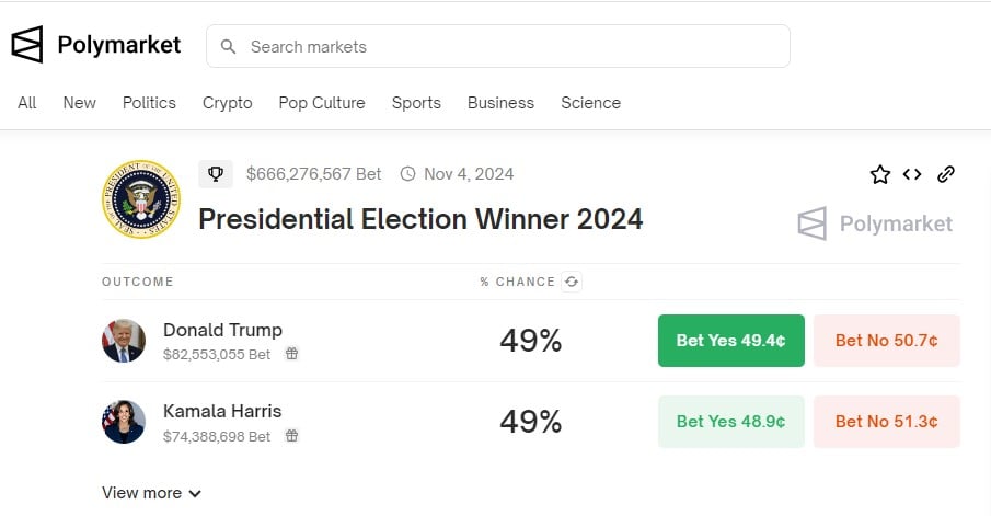 Following her speech on these proposals, Harris’ odds of winning the election dropped to 49% on the decentralized prediction marketplace Polymarket, while Trump’s odds saw a corresponding surge to 49%.