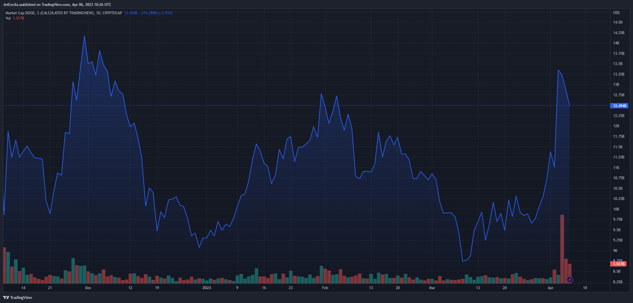 Капитализация Dogecoin составляет сейчас чуть более $11,859 млрд.