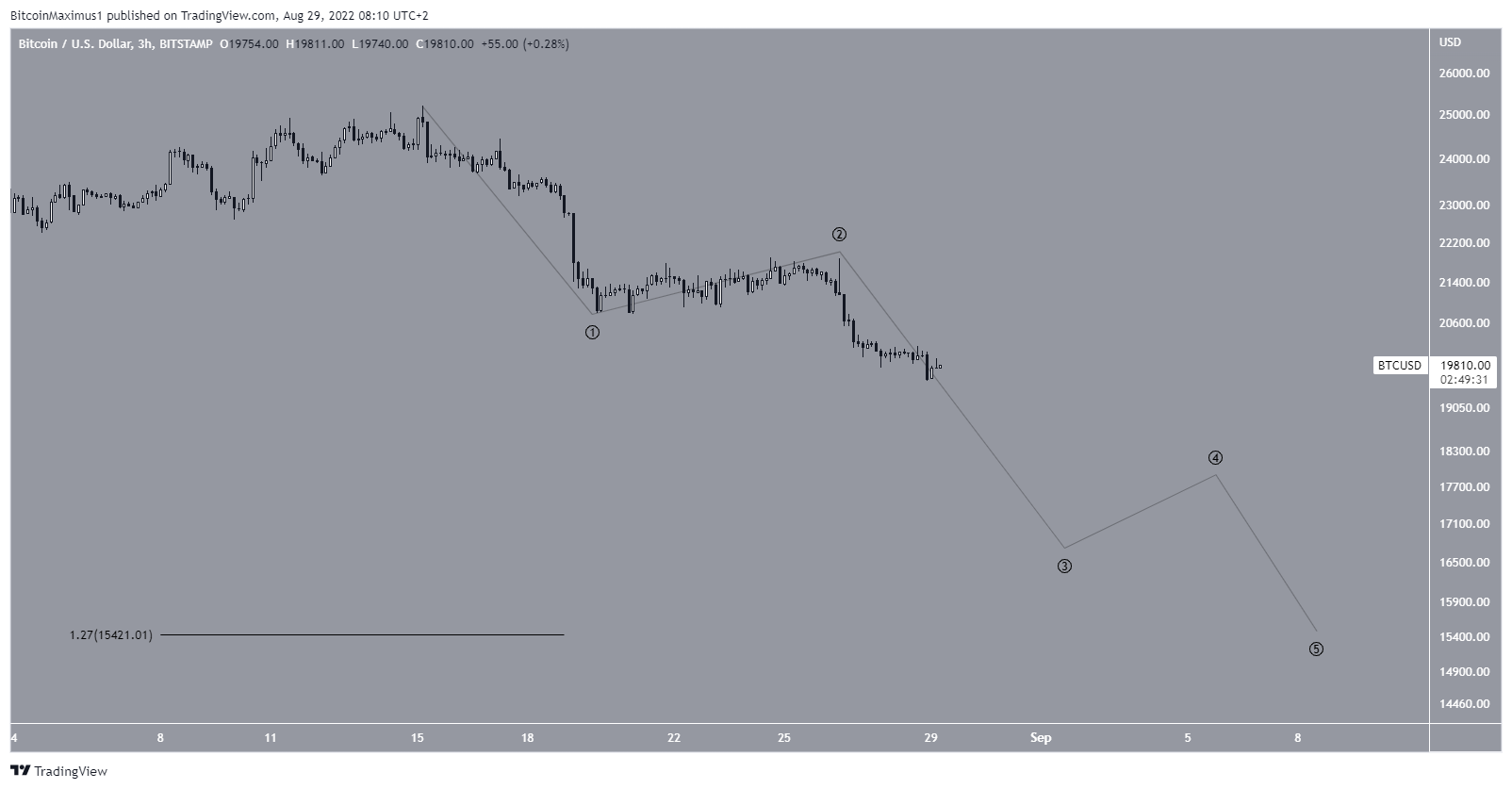 Более краткосрочный анализ предполагает, что BTC находится в подволне 3 волны 5 этой пятиволновой медвежьей структуры. Соответственно, после этого медвежьего хода можно будет ожидать еще одно существенное снижение цены.