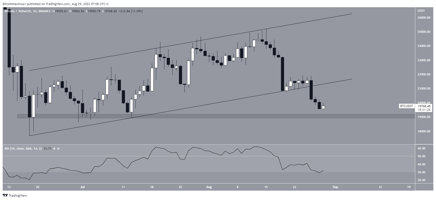Ближайшая область поддержки на дневном графике отмечается на $19 100, что совпадает с уровнями, выделенными на недельном таймфрейме.