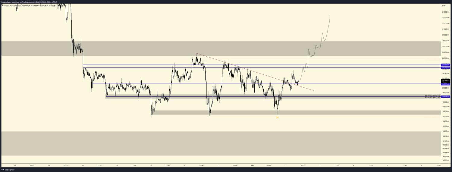После этого мы должны увидеть подъём к $ 22 500–23 000. Отменой этого сценария будет пробой $ 19 500, а твёрдым подтверждением будет прорыв ниже $ 19 000.