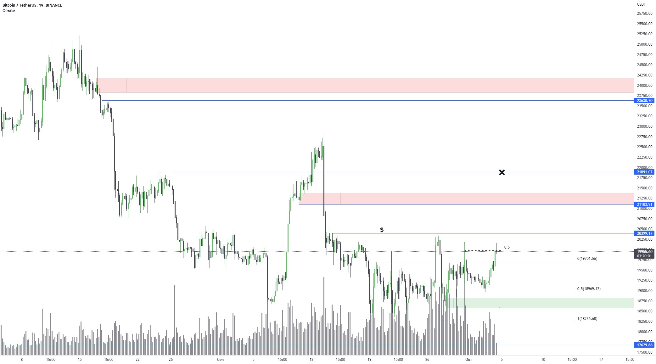 В теории мы можем пройти локальный хай и дойти до полки 23650$, так как мы не тестировали OB, но об этом говорить пока рано. Так как рынок глобально не определился все позиции имеет смысл рассматривать, учитывая подтверждение с LTF.