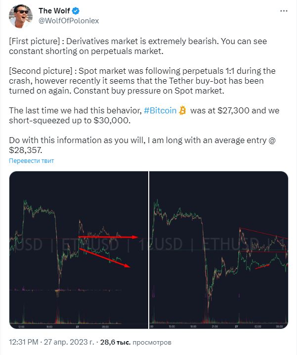 Делайте с этой информацией, что хотите, у меня длинная позиция со средним входом $ 28 357.