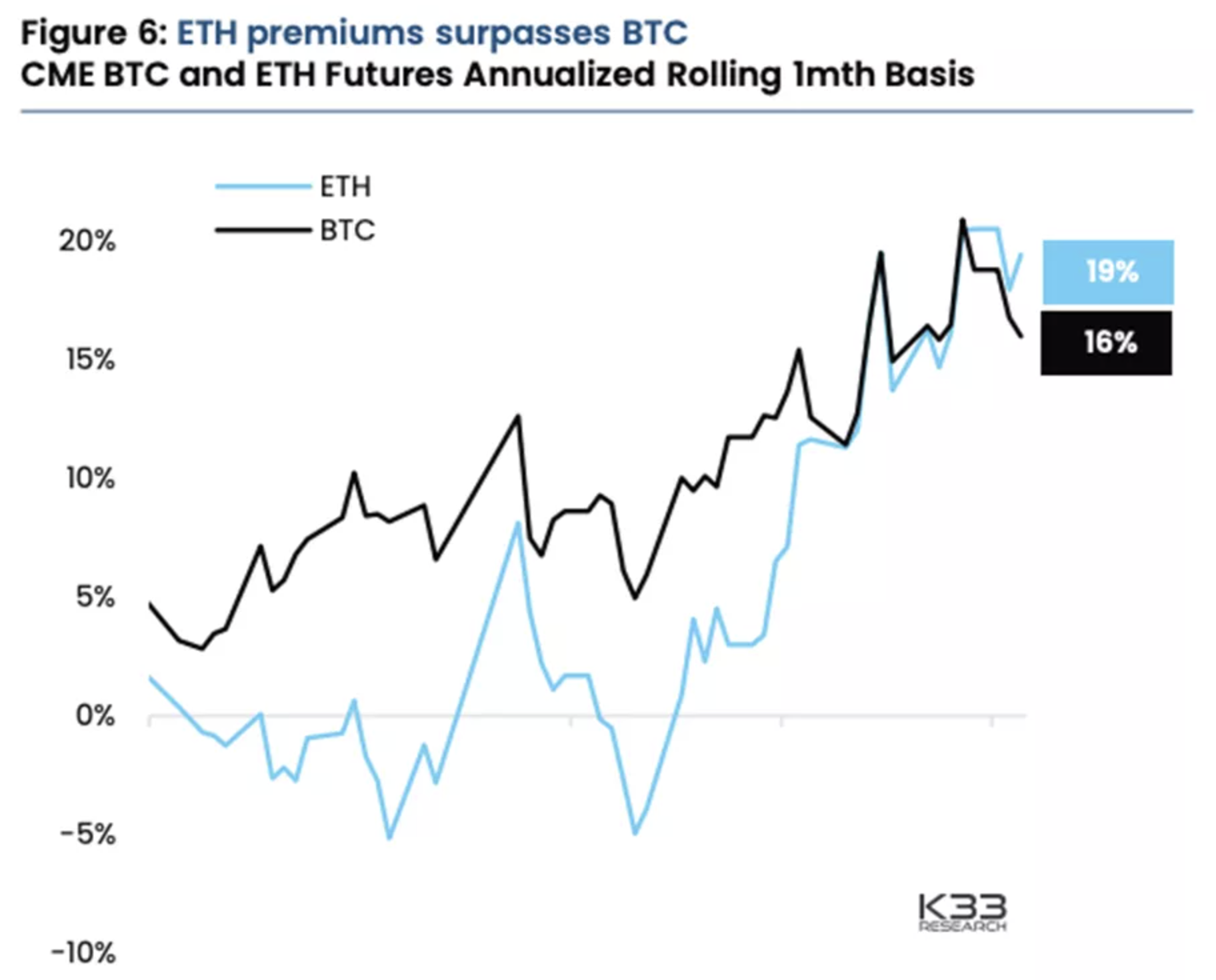 Эксперты пишут, что впервые с августа премия по фьючерсам на Ethereum превысила аналогичный показатель на биткоин. По их мнению, это может происходить на фоне заявки BlackRock на запуск спотового ETF на Ethereum.