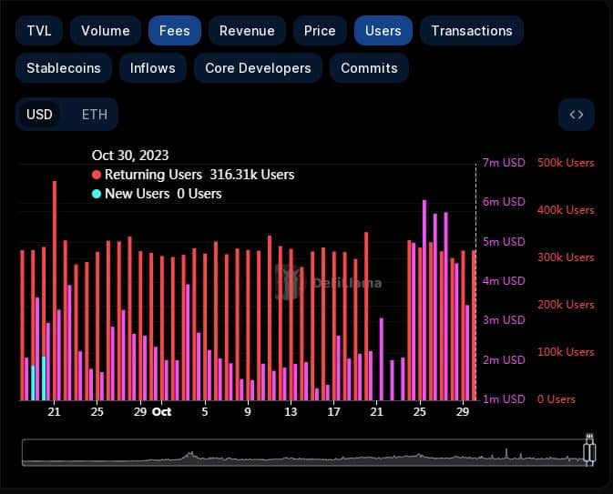 За семь дней в сети эфириума зарегистрировались около 320 000 новых адресов. Усиление сетевой активности привело к увеличению транзакционных сборов. К концу октября их общий размер превысил $6 млн – это максимальный показатель с августа.