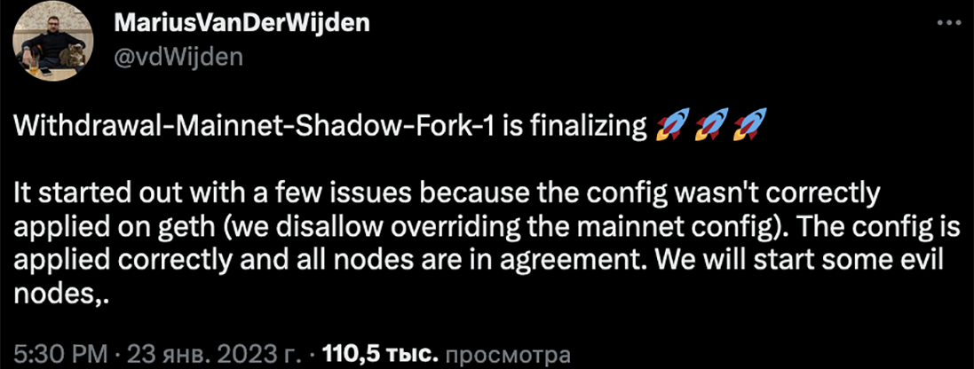 В рамках подготовки к Shanghai в начале года команда разработчиков Ethereum реализовала тестовую версию обновления сети, а в феврале она сделала также тестнет Zhejiang, предназначенный для проверки механизма вывода токенов из контракта Beacon Chain.