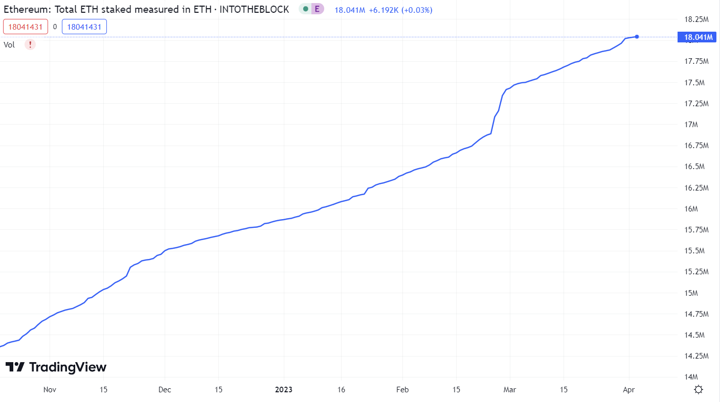 Рост объема TVL в сети. Total Value Locked – объем заблокированных в сети активов – также демонстрирует рост. Даже давление нормативных и макроэкономических факторов, возникшее с 10 марта, не смогло помешать восстановлению рынка децентрализованных финансов.