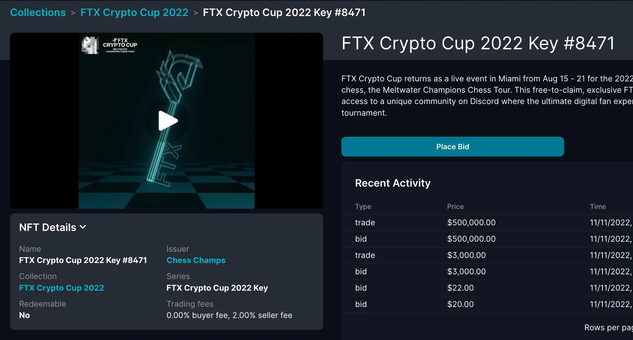 NFT на маркетплейсе FTX стоимостью $500 000
