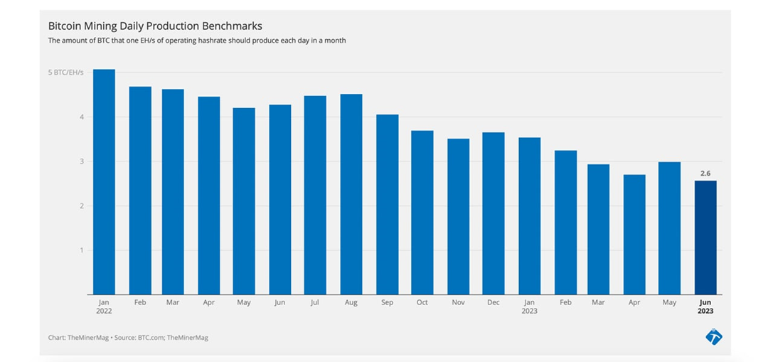 В июне блокчейн Биткойн столкнулся с двумя перенацеливаниями сложности. 14 июня произошло увеличение на 2,18%, а 28 июня произошло снижение на 3,26%. Общий хэшрейт Биткойн достиг ATH 516,61 EH/s 11 июня 2023 года.