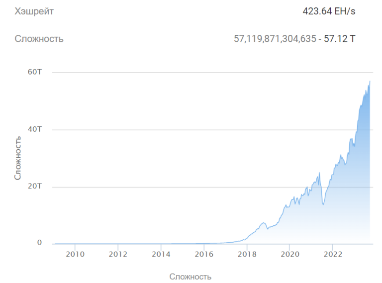 Последующая корректировка сложности ожидается 2 октября 2023 года. После скачка до 57 триллионов хешрейт остается повышенным, при этом текущее время блока составляет в среднем девять минут и 33 секунды.