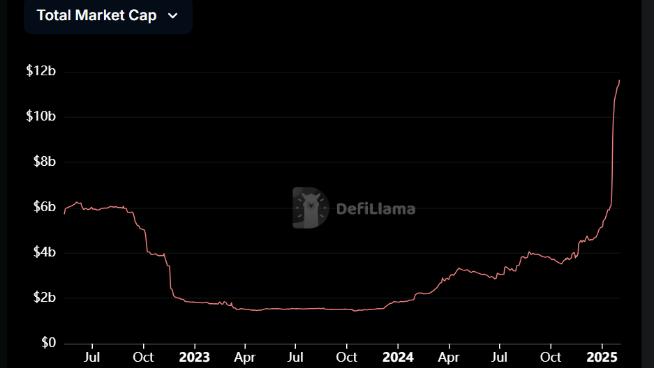 بلغت سقف سوقSolana's StableCoin رقماً قياسياً جديداً عند 11.7 مليار دولار ، حيث ارتفع بأكثر من 116 ٪ في 30 يومًا فقط.