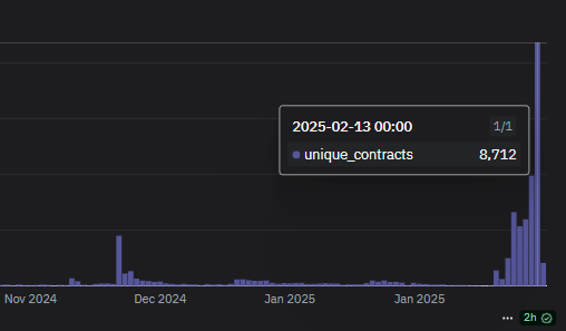 في 12 فبراير ، وصلت منصة Four.meme إلى ذروتها الأولى ، مع 8،712 رمزًا فريدًا. تم إطلاق ما يقرب من 40،000 رمز في الأيام الأولى من المنصة.