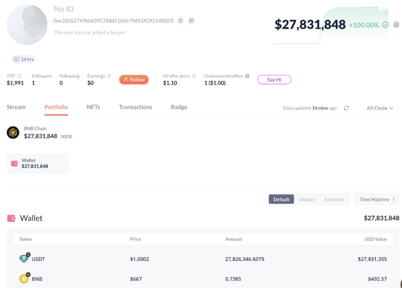 كشف Lookonchain: "...في النهاية، حقق هذا القناص إجمالي 27,8M USDT".