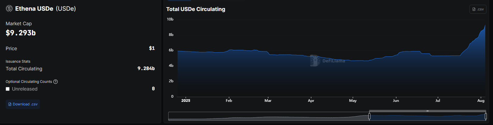 كما ارتفع المعروض من عملة sUSDe إلى أكثر من 5.22 مليار دولار، مما يشير إلى أن عملة USDe لديها حاليًا حوالي 4 مليارات دولار من المعروض الحر للعمليات الأخرى.