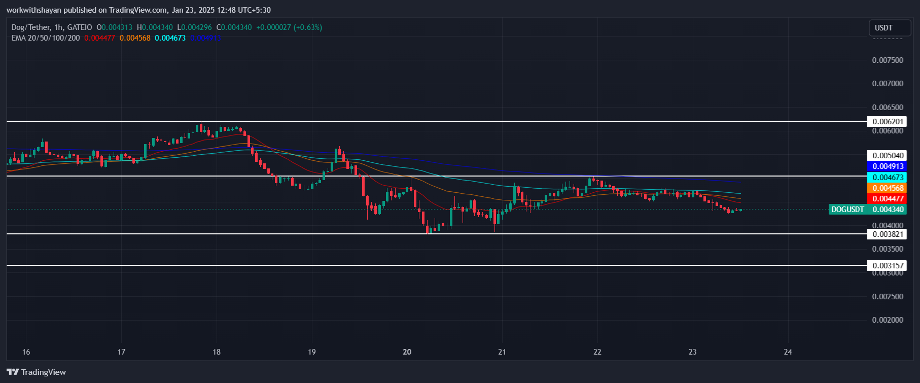 - دعم DOG/USD موجود عند 0.003821 دولار.