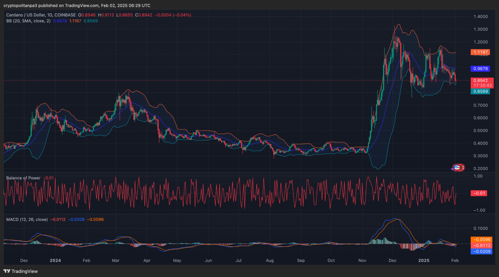 - اعتبارًا من فبراير 2025 ، يتم تداول ADA عند 0.89 دولار.