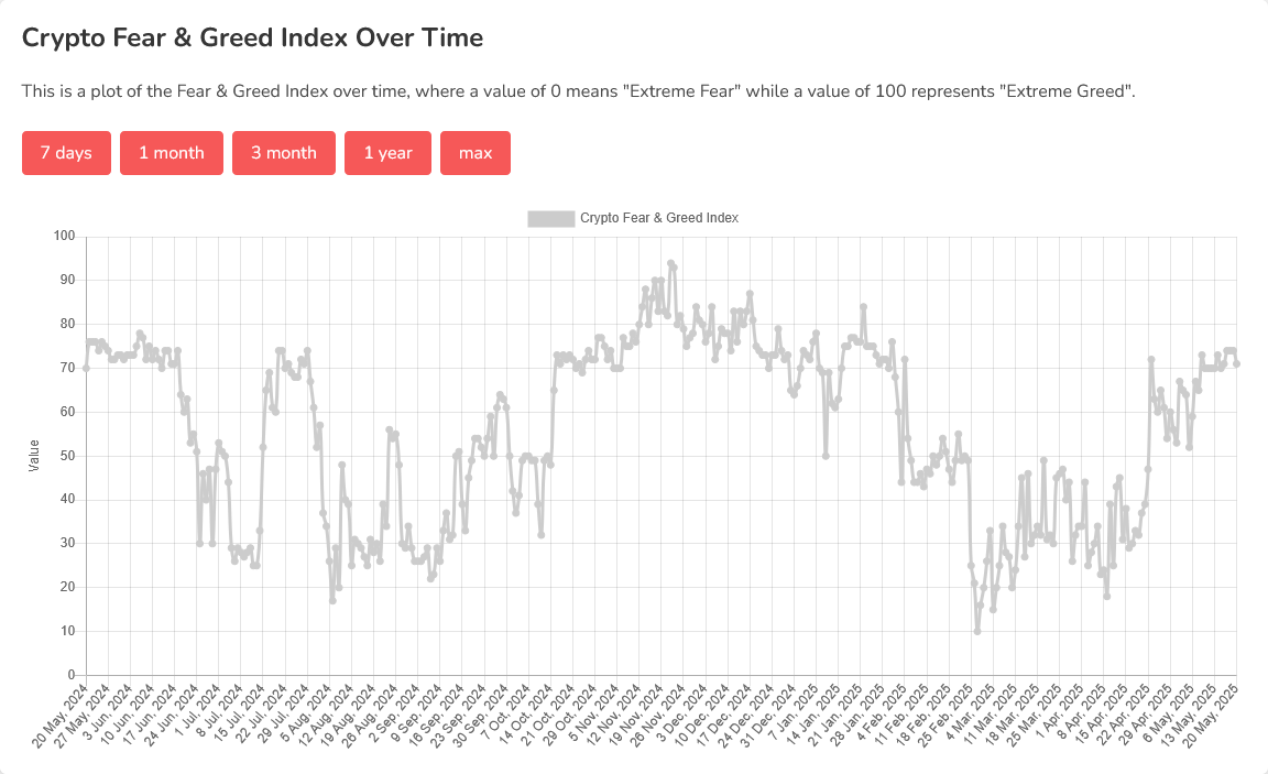 . ورغم أن المؤشر لم يدخل بعد منطقة "الجشع المفرط"، فإن بقاؤه عند هذا الحد لثلاثة أيام متتالية يفتح باب التساؤلات حول مدى قدرة السوق على الصمود دون تصحيح حاد.