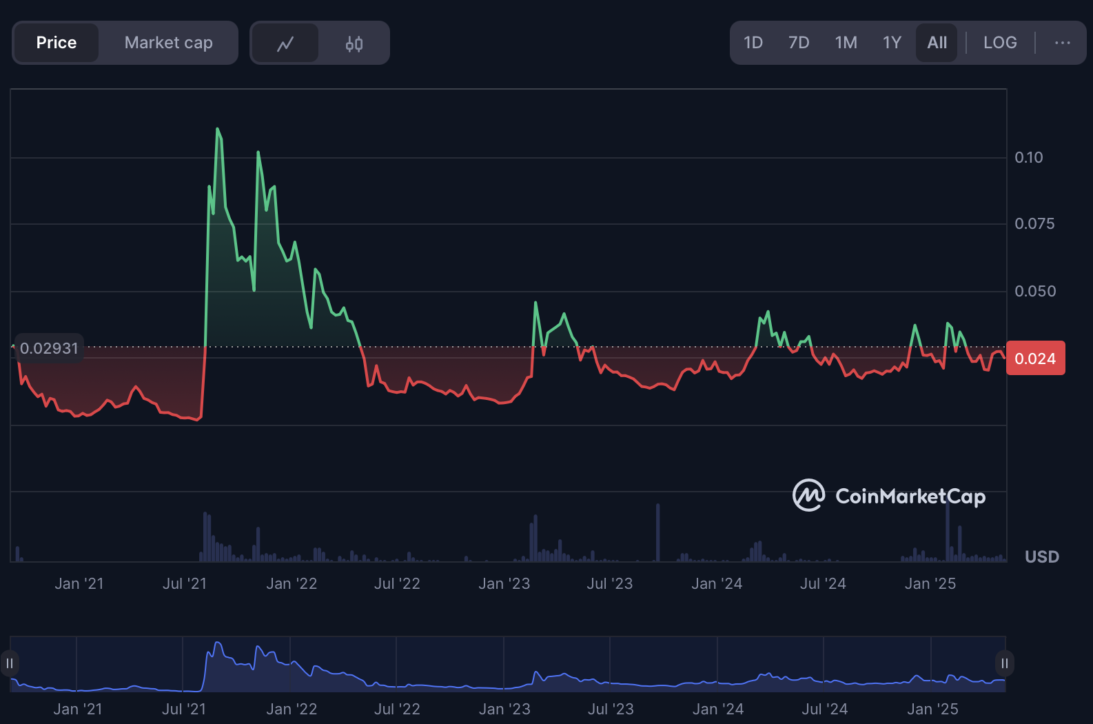| أعلى مستوى على الإطلاق | 0.1975 دولار أمريكي 06 أغسطس 2021 |