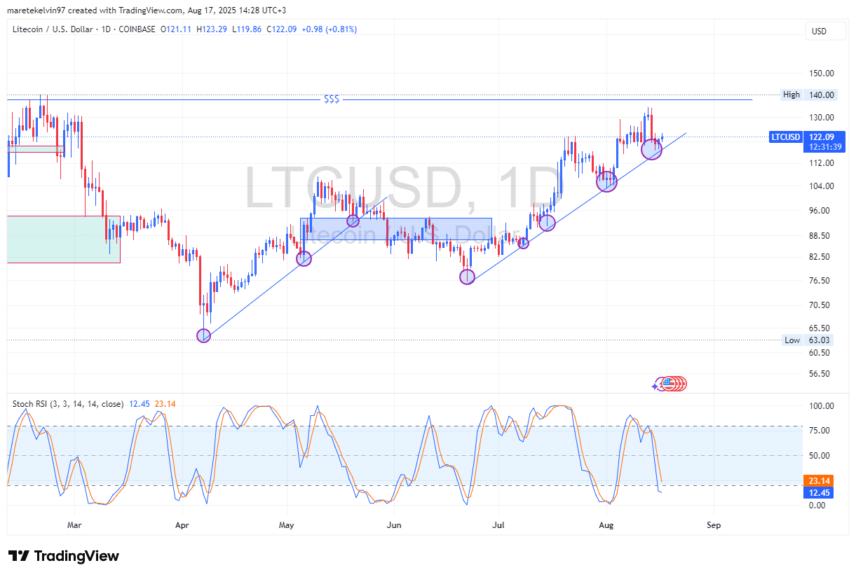 تختبر عملة لايتكوين (LTC) صبر المتداولين والمستثمرين مرة أخرى. فعلى الرسوم البيانية اليومية، ارتدت العملة البديلة عن مستوى دعمها طويل الأمد لخط الاتجاه للمرة الخامسة على التوالي، مما يدل على مدى أهمية هذا المستوى.