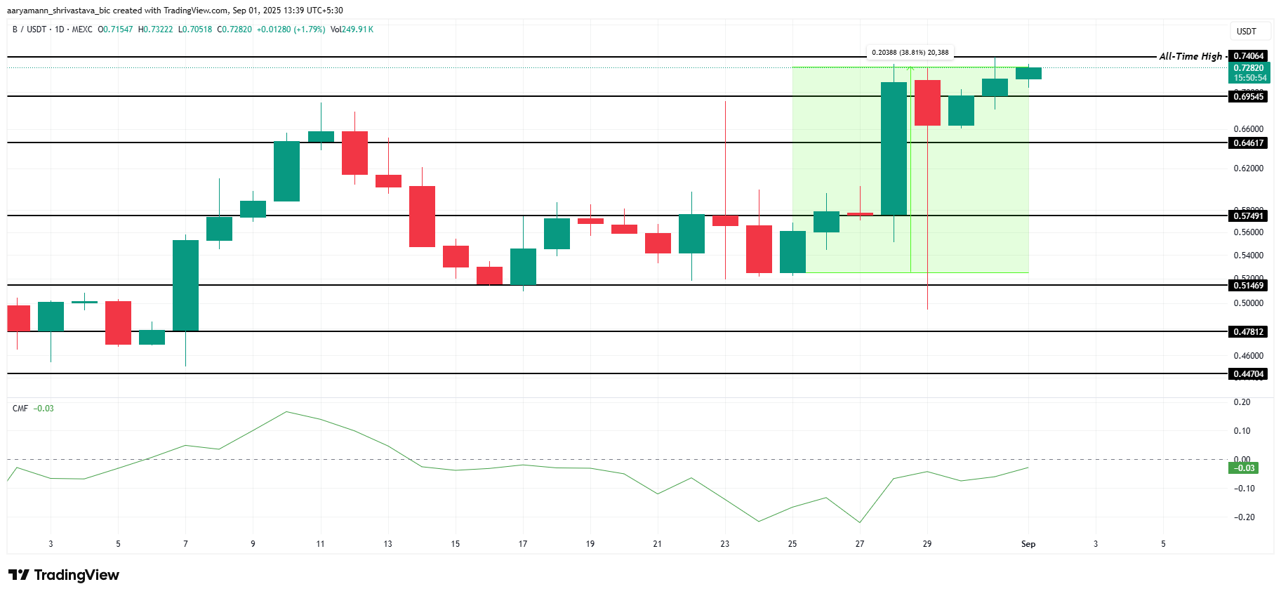 وقد تحافظ عملة الميم على ارتفاعها مع اقتراب تدفق أموال تشايكين من المنطقة الإيجابية. وسيؤكد اختراق الخط المحايد تزايد تدفقات رأس المال. وقد يعزز هذا الزخم، مما يدفع BUILDon للأعلى، ويمكنها من تحقيق أعلى مستوى تاريخي جديد.