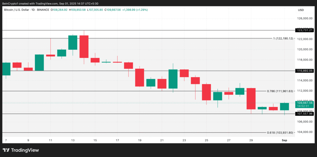 وفي الأسابيع التي جاءت بعد ذلك، خسر ما يقرب من 10% من قيمته، ومع ذلك تداول العملة الرائدة الآن دون 110,000 دولار أمريكي، وبالنظر إلى ميلها التاريخي إلى الأداء الضعيف في شهر سبتمبر، تبدو التوقعات لهذا الشهر متشائمة بشكل متزايد.