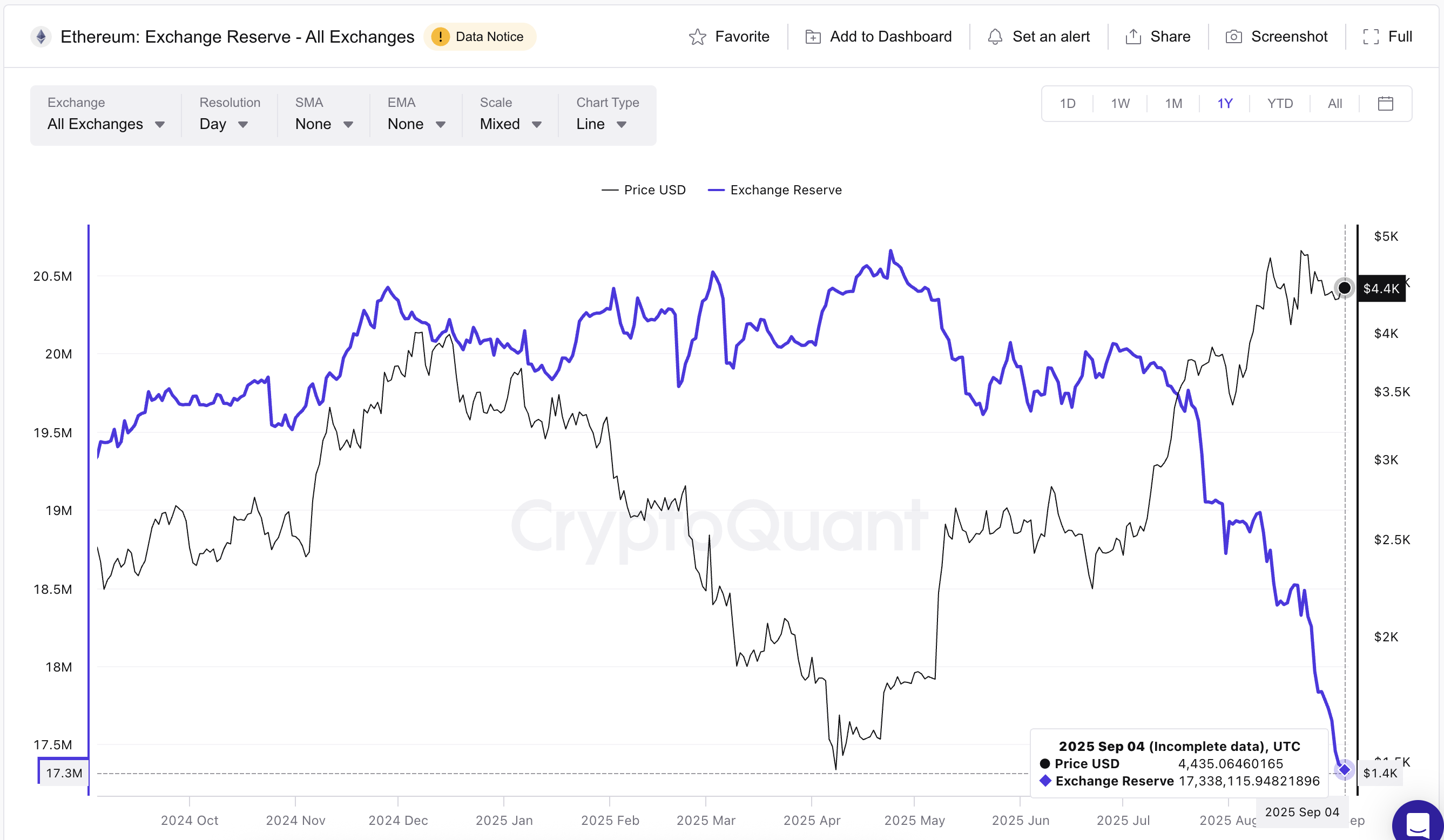 تواصل الشركات العامة والخزائن التراكم. تحتفظ أكبر 100 شركة خزينة بيتكوين عامة، بما في ذلك أمثال MicroStrategy، بشكل جماعي بـ 998,613 بيتكوين. على إيثريوم، كشفت Sharplink Gaming عن حيازات 837,230 إيثريوم اعتبارًا من 31 أغسطس. وأسماء كبيرة أخرى مثل Bitmine موجودة أيضًا عندما يتعلق الأمر بابتلاع إمدادات إيثريوم.