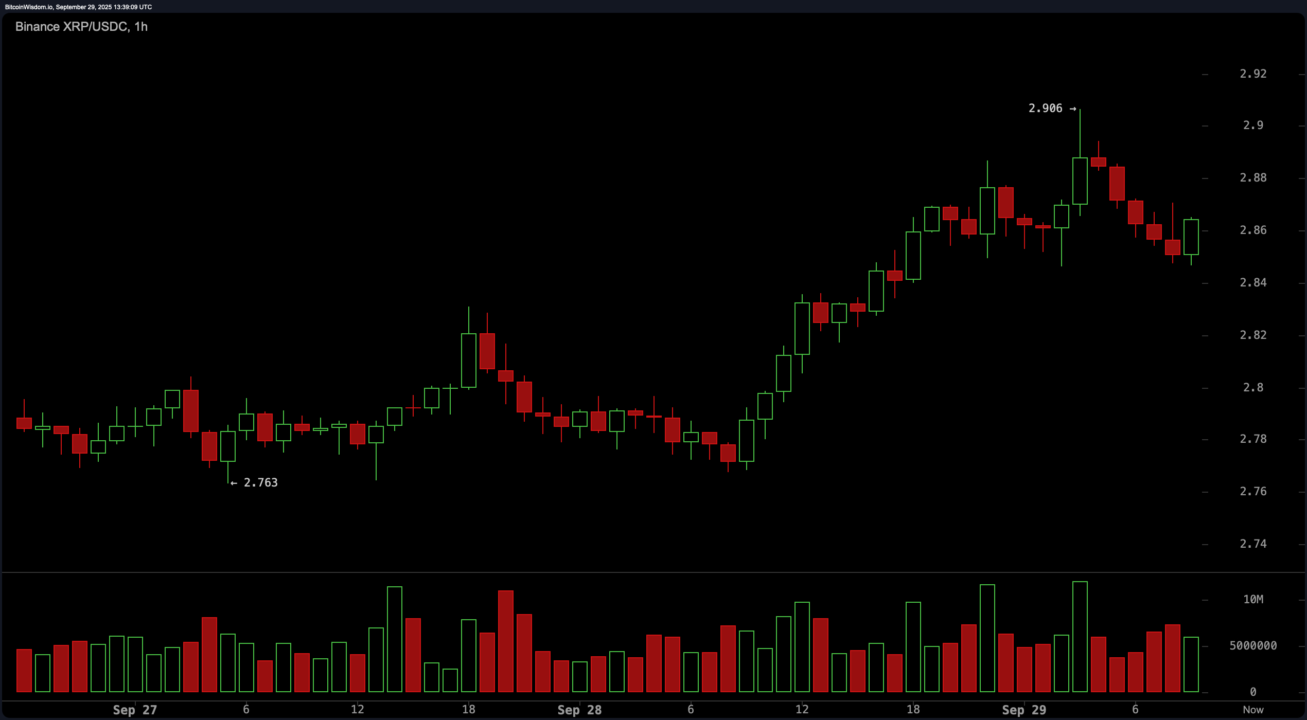 إن الرسم البياني لساعة واحدة لـ XRP يعطي أجواء برامج تلفزيون الواقع القوية: حركات درامية، واسترداد فجائي، وتوتر يبقي المشاهدين يعودون. حمل الاتجاه الصعودي الصغير السعر من $ 2.76 إلى $ 2.90 قبل أن يتوقف ويتحول إلى وضع التماسك حول $ 2.85–$ 2.87.