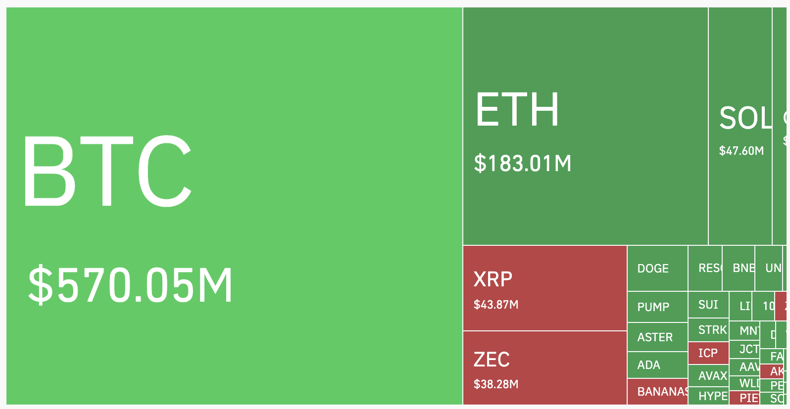 وفقًا لأحدث البيانات من Coinglass، تمت تصفية 1,03 مليار دولار من المراكز خلال اليوم الماضي. أكثر من 70% من المراكز المصفاة كانت طويلة، أي 726,5 مليون دولار، مقارنة بـ 308,2 مليون دولار في المراكز القصيرة.