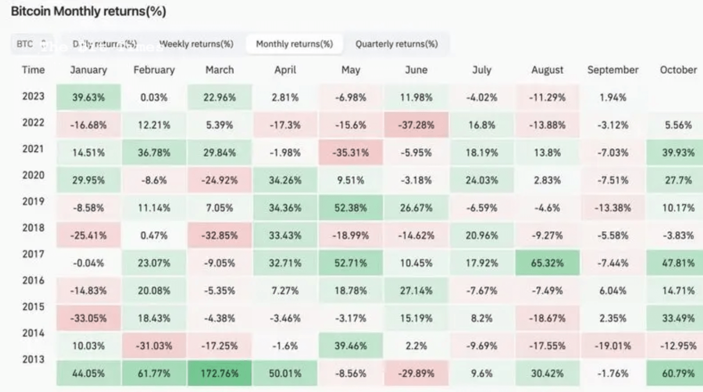 حيث سجلت عملة بيتكوين عام 2022، زيادة مذهلة في القيمة بنسبة 6٪ تقريباً في نفس الشهر بالرغم من الظروف الهبوطية، كما شهدت عملة بيتكوين ارتفاعاً ملحوظاً بنسبة 40٪ خلال شهر أكتوبر/تشرين الأول 2021، ولوحظ هذا النمط من الأداء الإيجابي باستمرار على مر السنين.