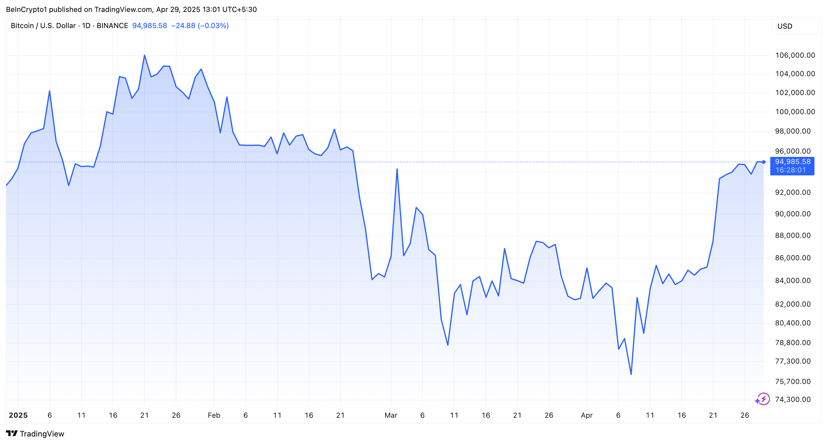 هذا التأثير واضح بالفعل حيث تعافت قيمة BTC وسط انخفاض الدولار. خلال الأسبوع الماضي، ارتفعت بنسبة 7,5%. في وقت كتابة هذا التقرير، كانت BTC تتداول عند $94,985.