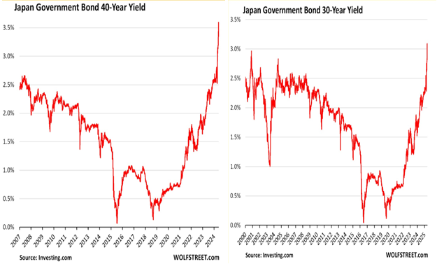 التضخم المرتفع أدى إلى بيع غير مسبوق في سندات الحكومة اليابانية (JGBs). ارتفعت العوائد لمدة ٤٠ عامًا بنسبة ١٪ منذ أبريل إلى ٣,٥٦٪، وهو الأعلى منذ أكثر من عقدين. وبالمثل، ارتفعت العوائد لمدة ٣٠ عامًا إلى أعلى مستوى لها في ٢٥ عامًا.