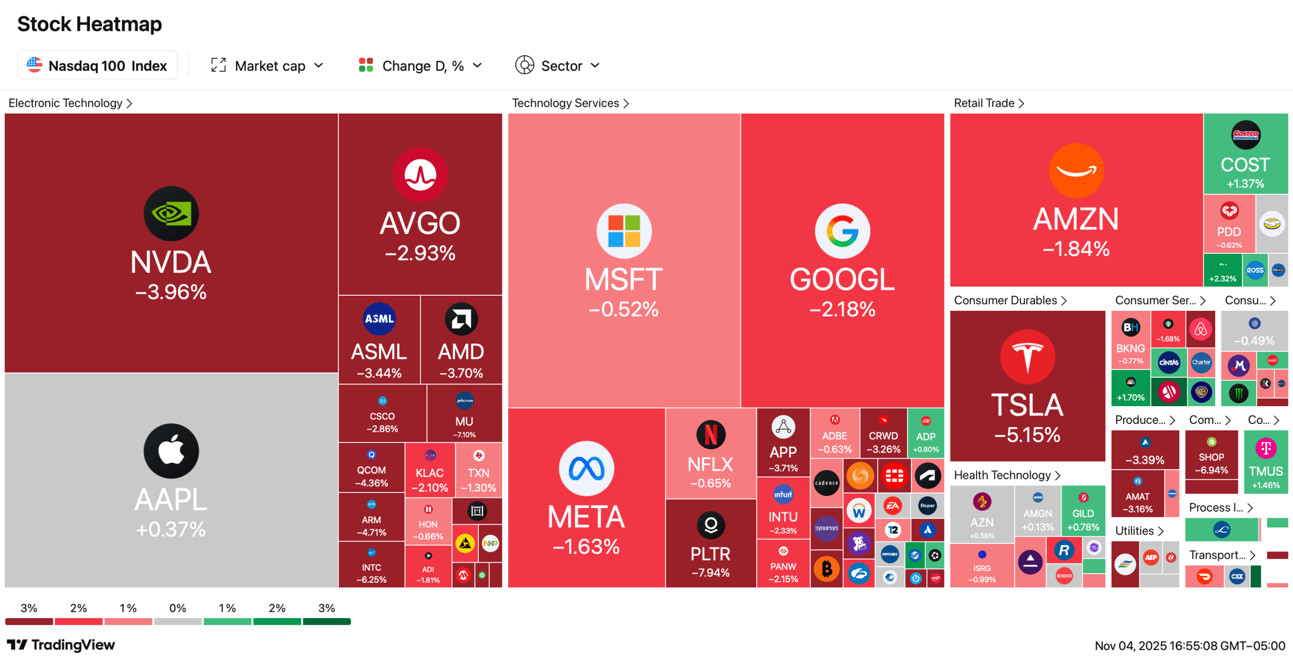 شهدت أسهم التكنولوجيا والأسهم المرتبطة بالعملات الرقمية وقطاع تعدين البيتكوين أكبر التراجعات. -