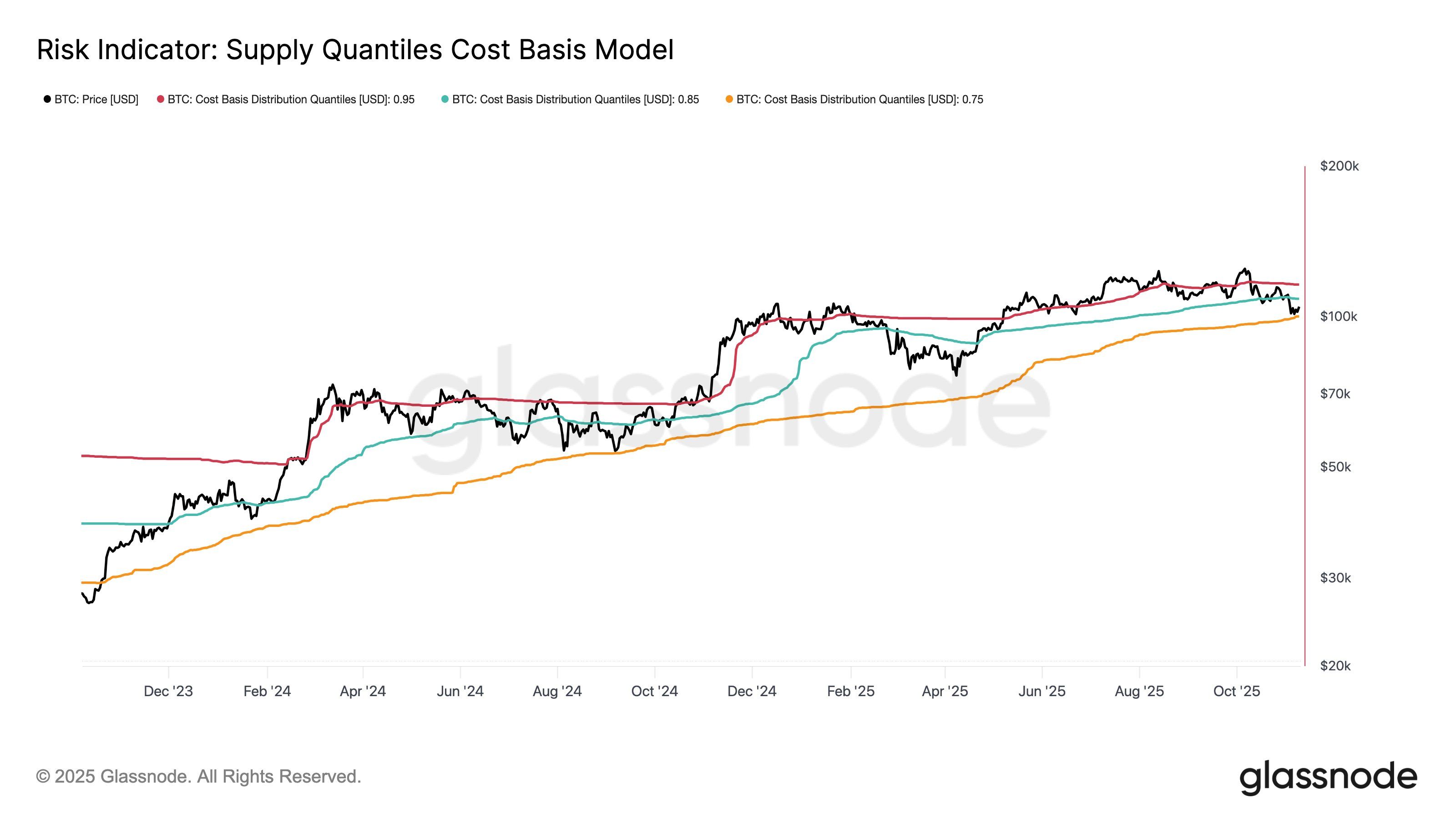 يؤمن المحللون أن بيتكوين سيواجه صعوبة كبيرة في كسر منطقة المقاومة القوية بالقرب من $108,000 على المدى القريب. منصة بيانات السلاسل Glassnode حددت هذا العائق الفني: "المستوى الرئيسي التالي هو التكلفة الأساسية في المئين الخامس والثمانين (~$108.5K)؛ وهي منطقة خدمت تاريخياً كمقاومة خلال حركات التعافي."