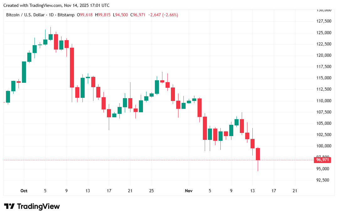 قليل من الناس توقعوا أن العملة المشفرة السائدة ستغرق إلى 94,525.06 دولار فقط بعد أسابيع من تسجيل أعلى مستوى لها على الإطلاق.