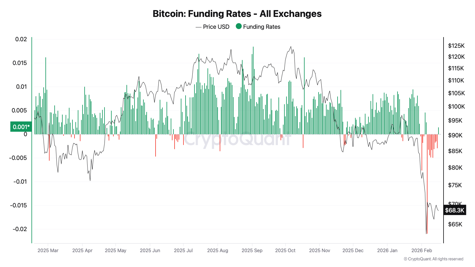 في الوقت الراهن، فإن قدرة البيتكوين على الصمود قرب 68,000 دولار بينما تهبط معدلات التمويل إلى منطقة سلبية بعمق ترسم سوقًا منقسمًا بين القناعة والحذر. وما إذا كان هذا سيصبح إعدادًا كلاسيكيًا لضغط صفقات البيع (short squeeze) أم تمهيدًا لهبوط أعمق فسيرتبط على الأرجح بالمحفزات الكلية، وتدفقات صناديق ETF، وما إذا كان بإمكان الثيران استعادة مستوى 70,000 دولار بقوة.