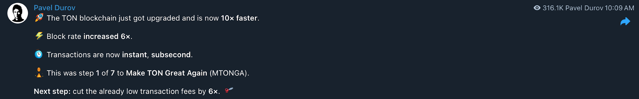 وأضافت الشبكة أن “زيادة عدد الكتل تعني مكافآت أكبر للمدققين، ما يعزز حوافز التحصيص ويجذب المزيد من $TON إلى الشبكة”.