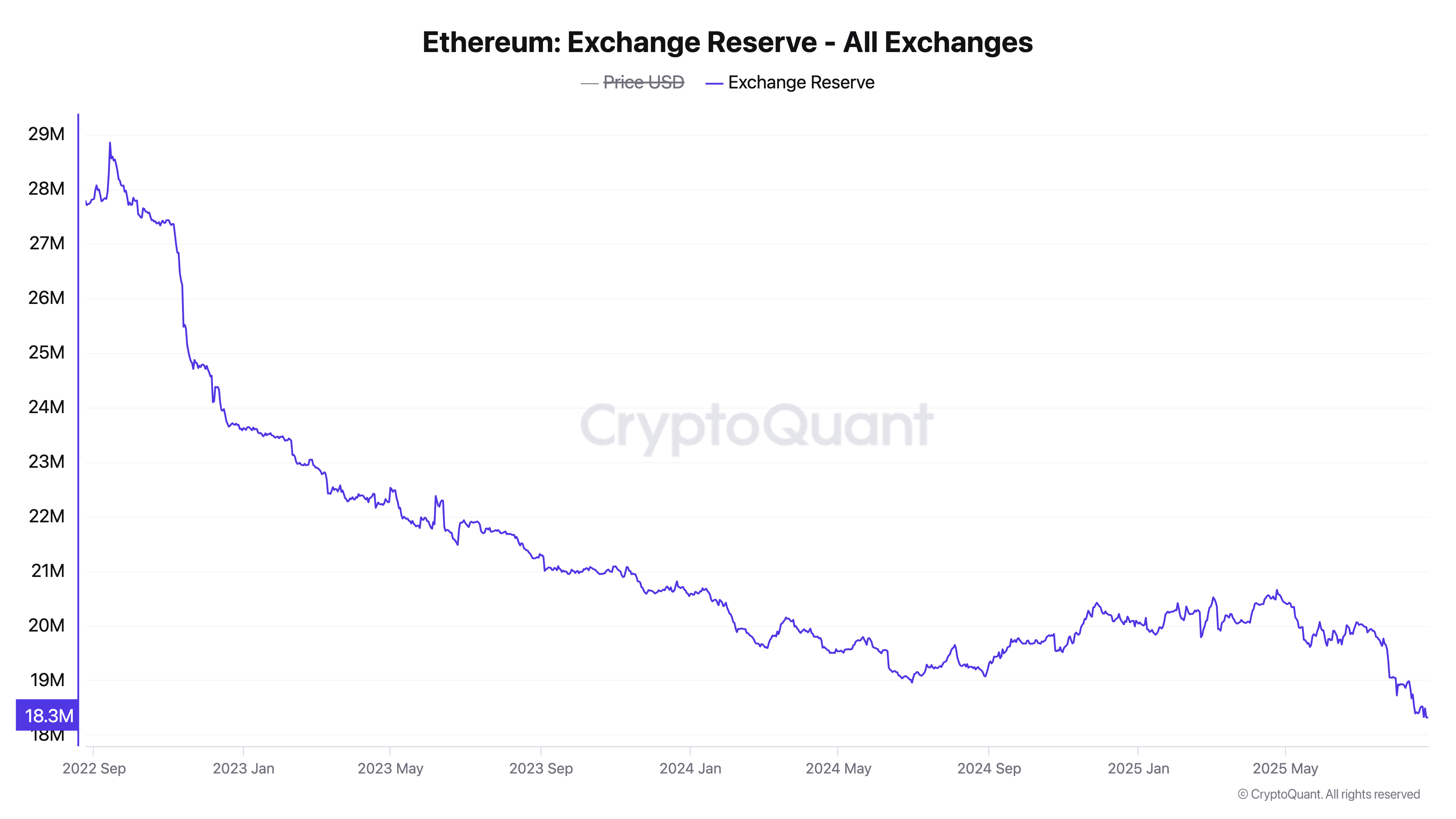 تقوم الشركات العامة بزيادة تعرضها لإيثريوم، وإنفاق مليارات الدولارات لشراء ETH. علاوة على ذلك، انخفض رصيد ETH في البورصات إلى مستوى منخفض جديد بلغ 18,3 مليون.