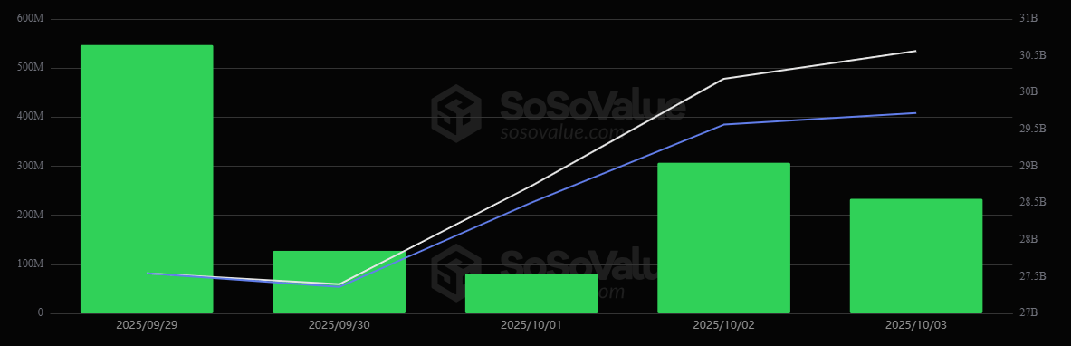 خمسة أيام متتالية من الازدهار: صناديق البيتكوين والإيثريوم تندفع في أكتوبر