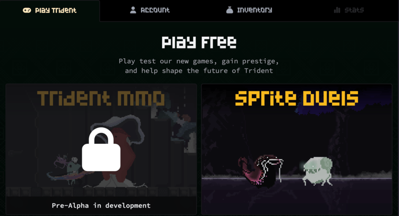 أثناء انتظار إصدار Trident MMO ، في هذه الأثناء ، هناك لعبتان متاحتان على منصة Trident. إحداهما هي لعبتهم الأصلية “Trial of the Trident” واللعبة الأخرى المتاحة هي “Sprite Duels”.