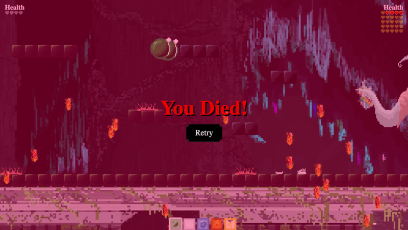 ليس عليك فقط تجنب أمطار البلورات والكرات الهجومية التي تنطلق من مخالب Kraken ولكن عليك أيضاً أن تمنع نفسك من التعرض للسع من “حفر الحمم البركانية” التي تظهر وتختفي أسفلك. كما أن أمطار البلورات قريبة للغاية من بعضها البعض ، لذا فهي تترك فجوة صغيرة جداً لشخصيتك لتختبئ منها. علاوة على ذلك ، تتسارع اللعبة ، ويأتي المطر وكرات اللوامس وحفر الحمم على فترات أسرع حيث يفقد Kraken حياته. حتى الضغط على زر “Esc” للتنفس والبحث عن مكان يمكنك الجري فيه بالكاد يساعدك.
