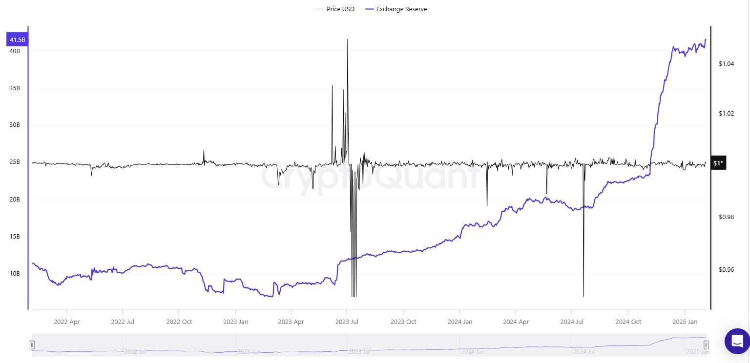 حدثت التدفقات الأكثر نشاطًا في USDT في نهاية عام 2024 ، لكن العرض الحالي على الأسواق المركزية يقترب من أعلى مستوياته على الإطلاق.