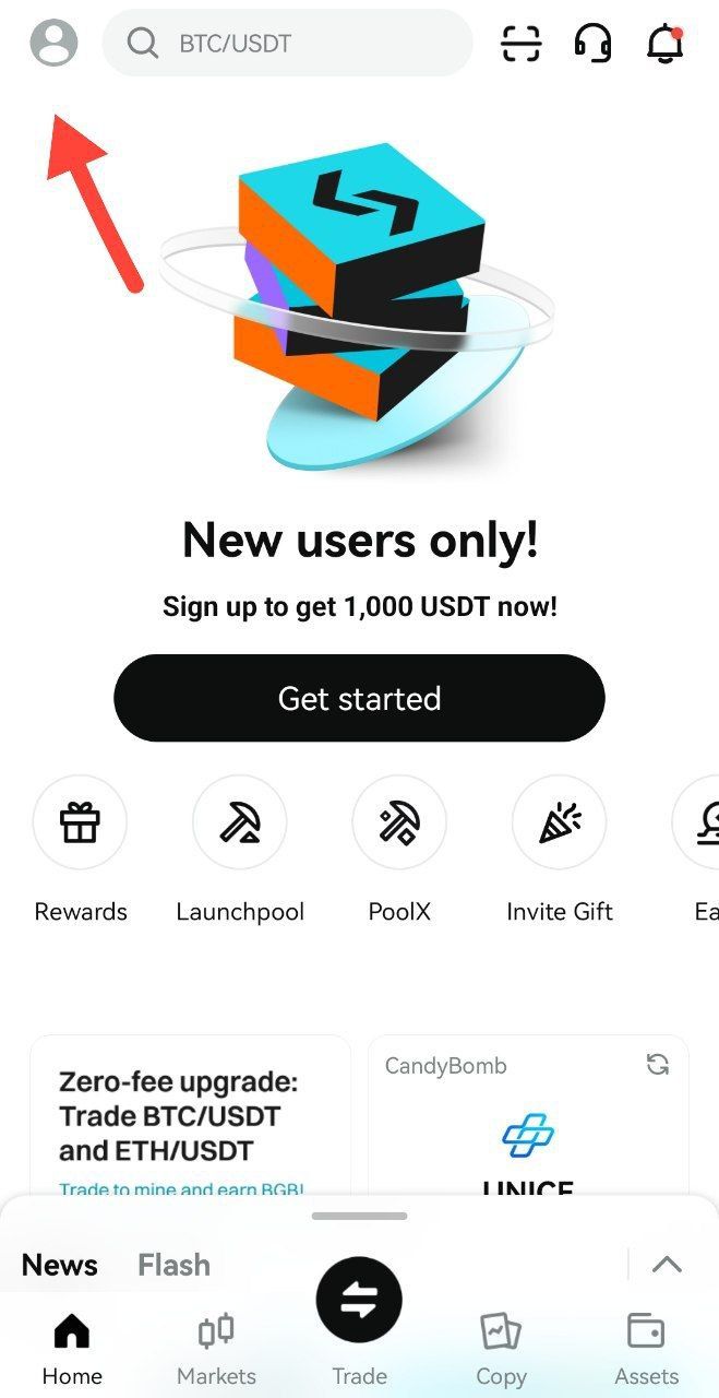 - افتح تطبيق Bitget وقم بتسجيل الدخول إلى حسابك.