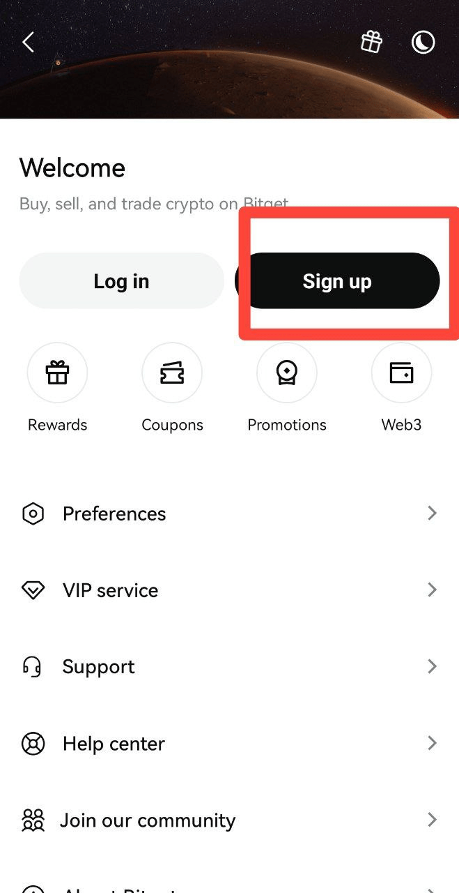 لبدء التداول على Bitget، الخطوة الأولى هي إعداد حساب التداول الخاص بك. إليك كيفية إنشاء حسابك بسهولة باستخدام تطبيق Bitget:
