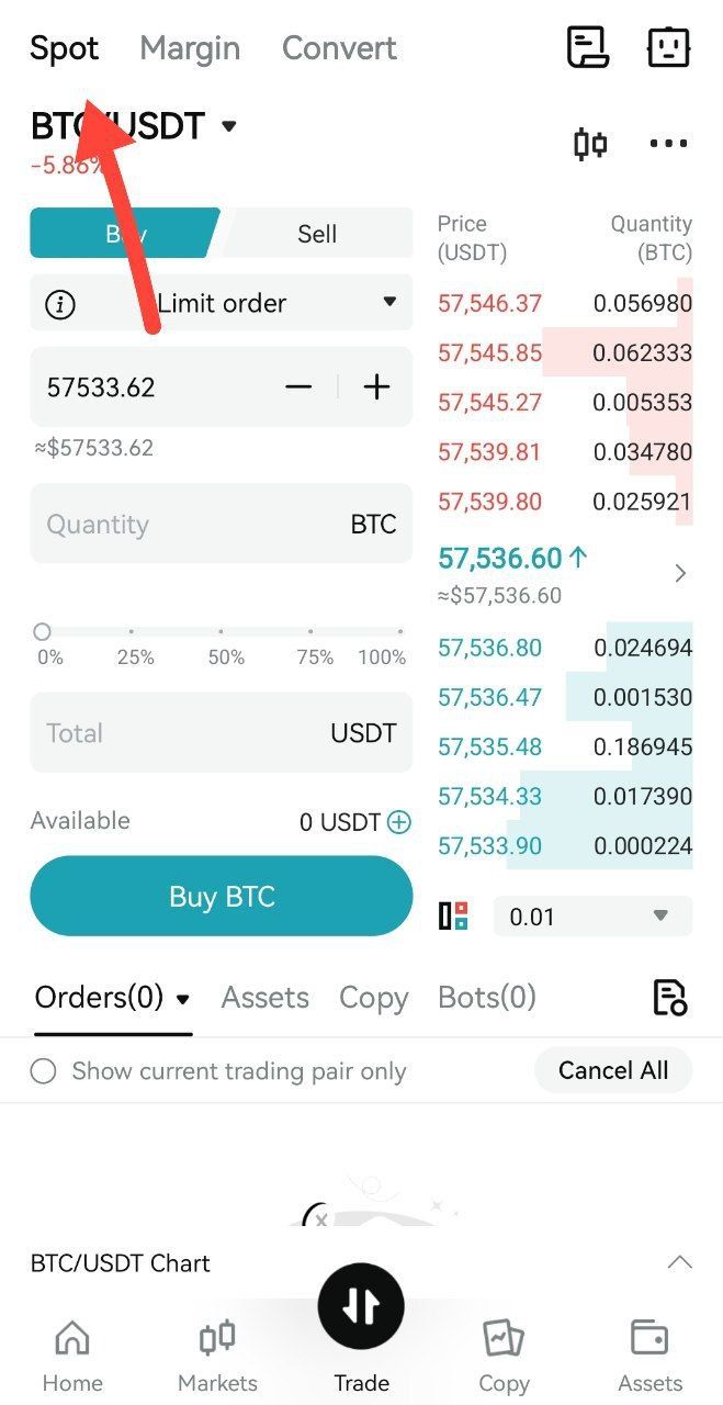 إن البدء بالتداول الفوري على Bitget أمر بسيط وفعال. اتبع هذه الخطوات لتقديم طلبك الفوري الأول:
