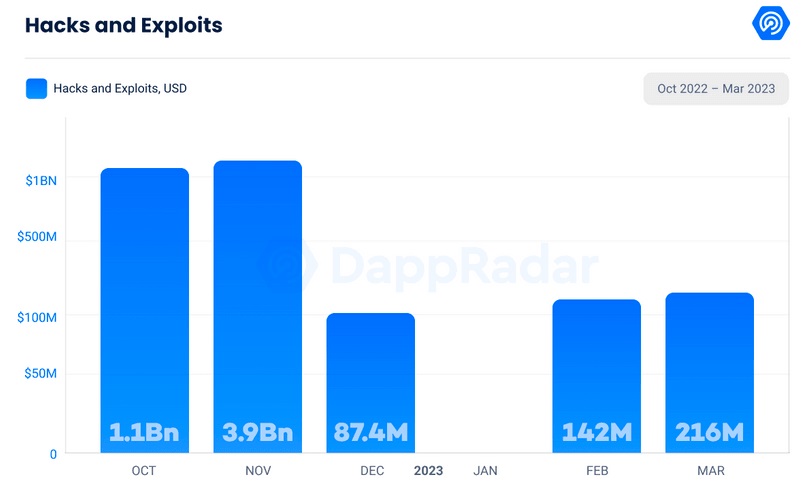 وكان أداء سوق $NFT الأفضل من حيث الأمان، حيث انخفاض بنسبة 30% في السرقات خلال شهر مارس مقارنة بشهر فبراير.